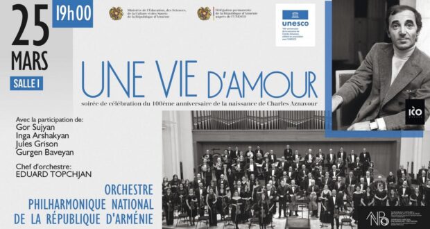 Փարիզում՝ ՅՈՒՆԵՍԿՕ-ի կենտրոնակայանում, մարտի 25-ին տեղի կունենա գալա-համերգ՝ նվիրված շանսոնի և երաժշտարվեստի  համաշխարհային լեգենդ, ՅՈՒՆԵՍԿՕ-ում Հայաստանի Հանրապետության դեսպան Շառլ Ազնավուրի ծննդյան  100-ամյա հոբելյանին: Համերգը կրում է «Une vie d’amour» («Սիրով լի կյանք») խորագիրը: