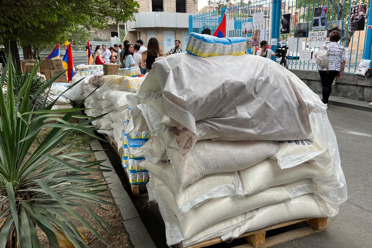 Ալյուրի պարկեր, ձեթ, շաքարավազ, աղ, սուրճ, քաղցրավենիք, նպարեղեն, հիգիենայի պարագաներ, առաջին բուժօգնության դեղորայք. «Բացում» քաղաքացիական նախաձեռնության կազմակերպիչներն ու մասնակիցները Արցախ ուղարկելու համար արդեն մի քանի օր է ՄԱԿ-ի հայաստանյան գրասենյակի մոտ հումանիտար օգնություն են հավաքում։