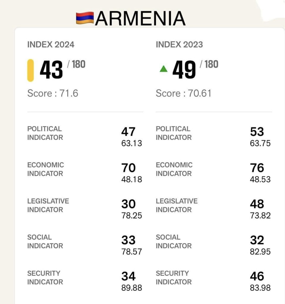 Ուրախ եմ տեղեկացնել՝ «Մամուլի ազատության ինդեքս» 2024-ում ՀՀ-ն բարելավել է իր դիրքերն ու հայտնվել 43-րդ հորիզոնականում։