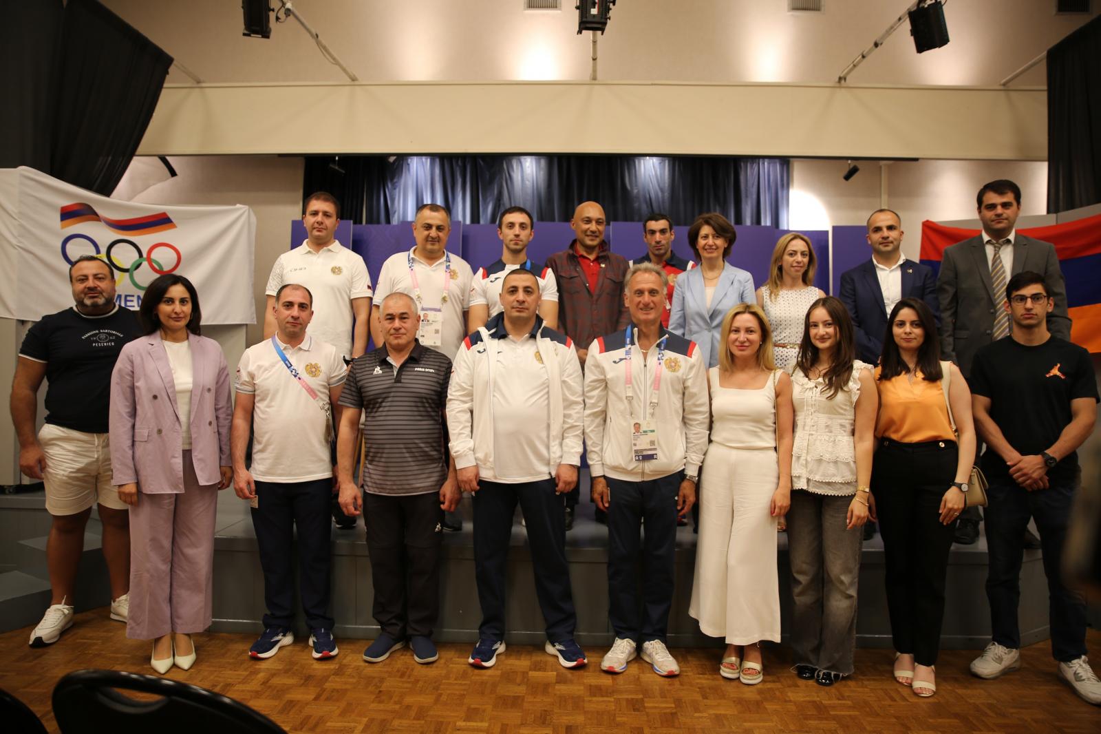 Հանդիպմանը ներկա էին Ֆրանսիայում ՀՀ դեսպան Հասմիկ Տոլմաջյանը, Փարիզի փոխքաղաքապետ Առնո Նգաչան, ՀՀ ԿԳՄՍ նախարարի տեղակալ Կարեն Գիլոյանը, Հայաստանի մարմնամարզության ֆեդերացիայի նախագահ Գագիկ Վանոյանը, հավաքականի գլխավոր մարզիչ Հակոբ Սերոբյանը, մարզիչ Հայկ Նազարյանը և այլոք: