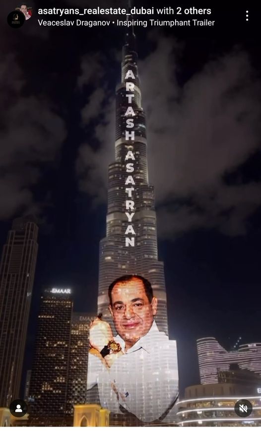 Արտաշ Ասատրյանին պատկանող անշարժ գույքի գործակալության մասին գովազդային հոլովակը հայտնվել է աշխարհի ամենաբարձր աշտարակի՝ Բուրջ Խալիֆայի վրա, որը գտնվում է Դուբայում։ Այս մասին, ըստ ֆեյսբուքյան օգտատեր Հասմիկ Հարությունյանի, ինստագրամի իր էջում գրել է երգիչը։
