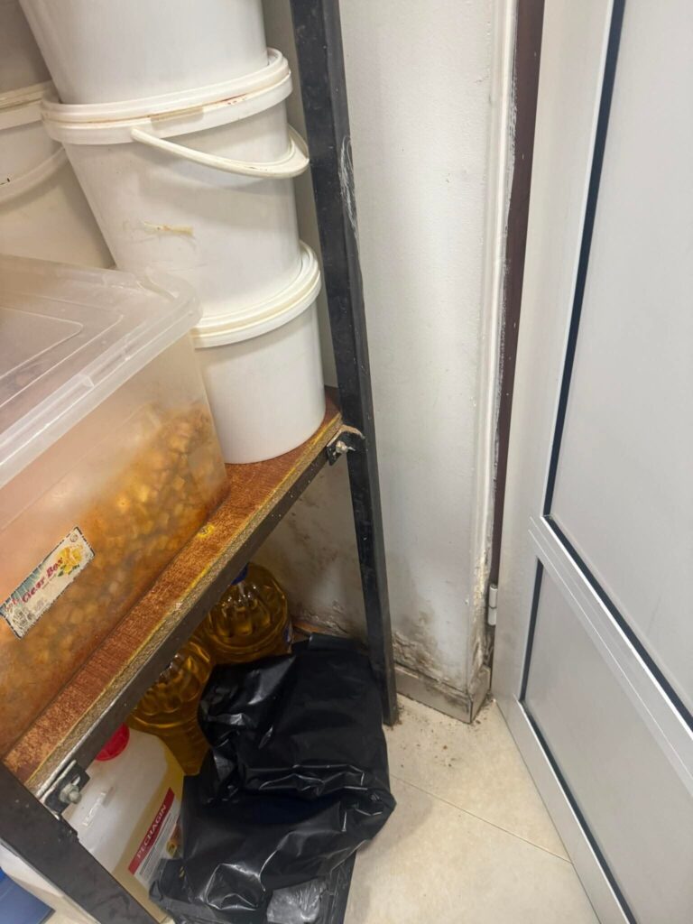Մասնավորապես՝ խոհանոցում գտնվող սնունդ պահելու պահեստային հատվածի պատերի մակերևույթները պատրաստված չեն եղել անջրանցիկ, լվացվող, ախտահանվող նյութերից, իսկ առաստաղները և տանիքների ներքին մակերևույթները վնասված են եղել, չի բացառվել կեղտի կուտակումը, բորբոսի առաջացումը և մասնիկների թափվելու հնարավորությունը: