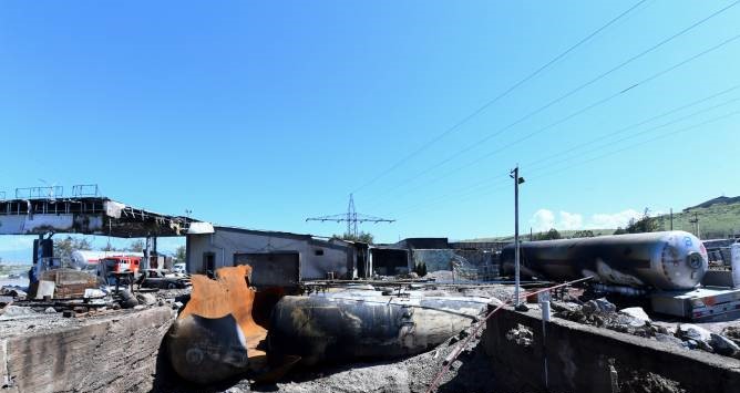 Գազալցակայանի տարածքում տեղի է ունեցել 3 հեղուկ գազի (յուրաքանչյուրը՝ 37 տ), 1 դիզելի (8 տ) և 1 բենզինի (12 տ) ցիստեռներից արտահոսք՝ հրդեհի բռնկումով: