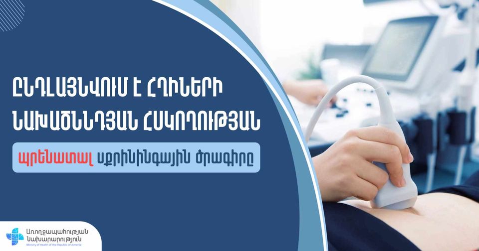 Անկախ ռիսկի գործոնների առկայությունից` մարզի բոլոր հղիների նախածննդյան հսկողության ընթացքում կիրականացվի հղիության սքրինինգ հետազոտություն, որը կընդգրկի բիոքիմիական սկրինինգ և էքսպերտային դասի ուլտրաձայնային հետազոտություն: