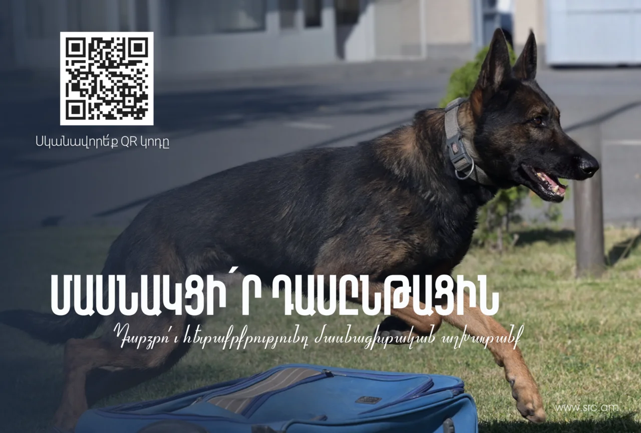 Պետական եկամուտների կոմիտեն աշխատանքի նոր հնարավորություն է առաջարկում Շնագիտական կենտրոնում։ Եթե կենդանասեր եք, սիրում եք աշխատանքը շների հետ, ուզում եք մասնագիտանալ շնագիտության ոլորտում և նպաստել երկրի անվտանգության ապահովմանը, ապա սա Ձեր հնարավորությունն է: Մաքսանենգության դեմ պայքարի վարչության շնագիտական բաժինը հայտարարում է նախապատրաստական դասընթացի մեկնարկի մասին։ Դասընթացը հաջողությամբ ավարտած մասնակիցներն աշխատանքի անցնելու հնարավորություն կունենան ՊԵԿ շնագիտական կենտրոնի մաքսային ծառայության պաշտոններում։