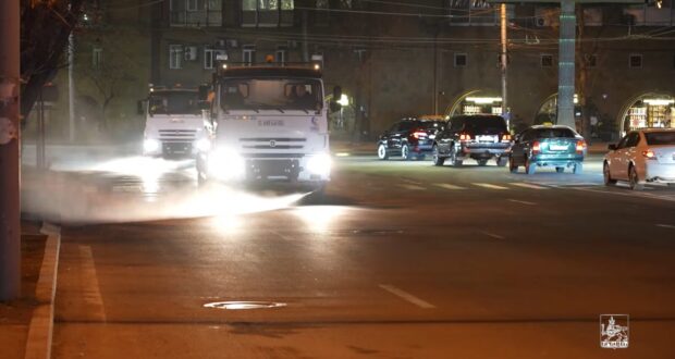 Ժամը՝ 01:00-ից մինչև 07:00-ը Երևանի աղբահանության և սանիտարական մաքրման ծառայությունը ջրցան և փոշեկուլ ավտոմեքենաներով կենտրոնական փողոցներում իրականացնում է ակտիվ աշխատանքներ: