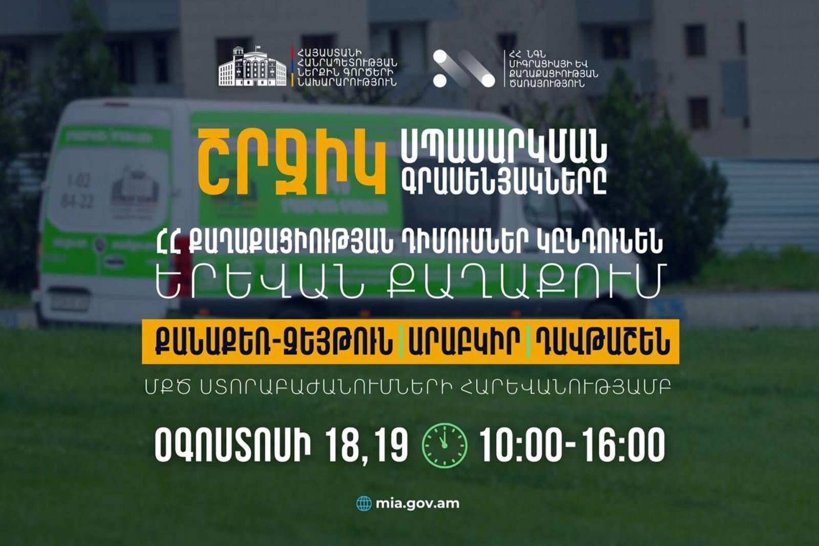 Ներքին գործերի նախարար Արփինե Սարգսյանի հրամանով՝ շրջիկ սպասարկման գրասենյակները ՀՀ քաղաքացիության դիմումներ կընդունեն նաև Երևանում։