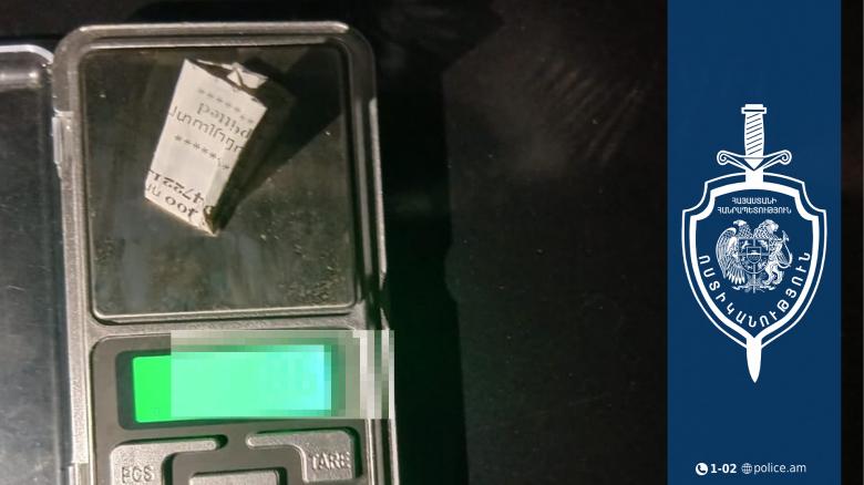 Քրեական ոստիկանության Շիրակի մարզային վարչության ծառայողները, իրացնելով օպերատիվ տեղեկությունները, Գյումրու Տերյան փողոցում ձերբակալել և «Մերսեդես» մակնիշի մեքենայով հանդերձ վարչություն են տեղափոխել 39-ամյա վարորդին և 34-ամյա ուղևորին։