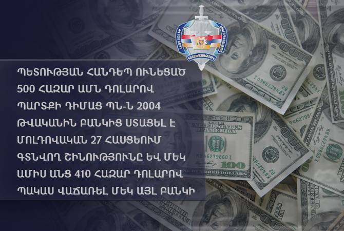 Պաշտպանության նախարարությունը «Կրեդիտ-Երևան բանկ» ՍՊ ընկերությունից, պետության հանդեպ ունեցած 500 հազար ԱՄՆ դոլար պարտքի դիմաց, 2004 թվականին ստացել է Ընկերությանը պատկանող 441,01 քմ մակերեսով շինությունը և նույն գույքը մեկ ամիս անց՝ 90 հազար ԱՄՆ դոլարով՝ 410 հազար ԱՄՆ դոլարով պակաս, վաճառել «Անելիք բանկ» ՍՊԸ-ին: Այդ մասին տեղեկացնում է Դատախազությունը: