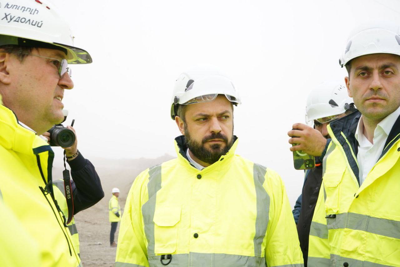 Նախարարներն այցելել են «Զանգեզուրի պղնձամոլիբդենային կոմբինատ» ՓԲԸ, ընկերության գլխավոր տնօրեն Ռոման Խուդոլիի ուղեկցությամբ շրջել բաց հանքում, հարստացուցիչ ֆաբրիկայի կիսաինքնամանրացման աղացի և գնդաղացի տեղամասերում, ծանոթացել արտադրական գործընթացին, ընկերության արդիականացման և արտադրողականության բարձրացման ուղղությամբ իրականացվող քայլերին։