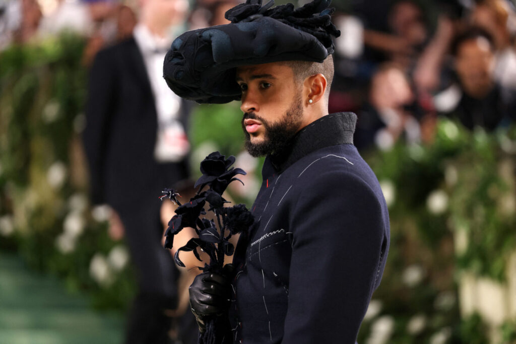 Բեդ Բաննին ընտրել է սև կոստյում՝ դեկորատիվ կարերով: Երգիչը ձեռքերում սև ծաղիկներ է պահել: