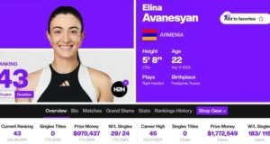 WTA. Էլինա Ավանեսյանն առաջին անգամ 43-րդ տեղում է
